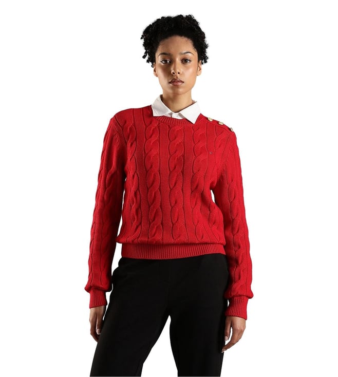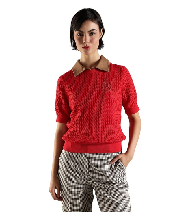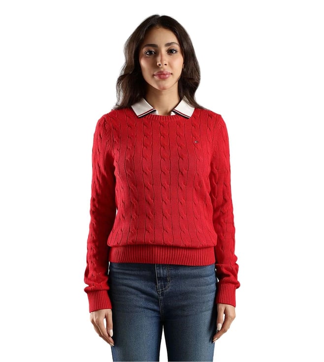 Primary Red Slim Fit Cotton Crew Neck Sweater