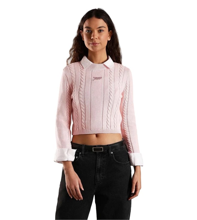 Ballet Pink Regular Fit Polyester Crew Neck Sweater