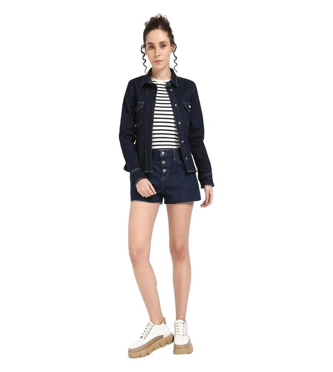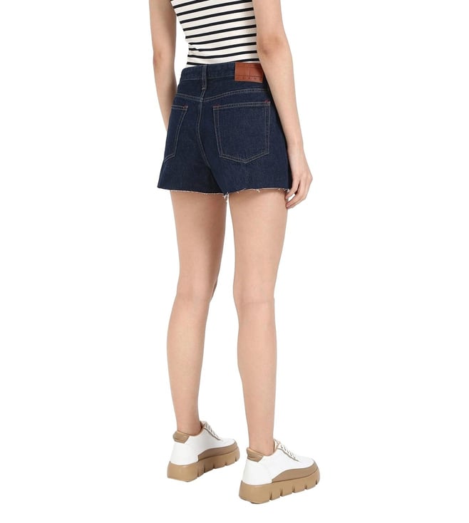 Stay cool and stylish with the Tommy Hilfiger Womens Blue Regular Fit Shorts. These blue shorts feature a regular fit, blending comfort with a modern silhouette. Perfect for summer outings or casual settings, their versatile shade pairs effortlessly with any top. Crafted with high-quality fabric, they ensure durability and a soft feel. Pair with a tee or blouse for a relaxed, polished look. Add these Tommy Hilfiger shorts to your wardrobe for timeless summer style.
