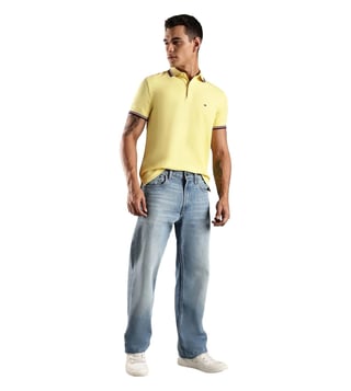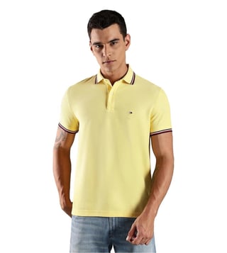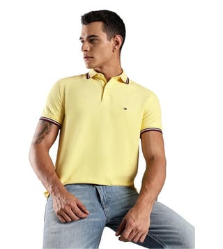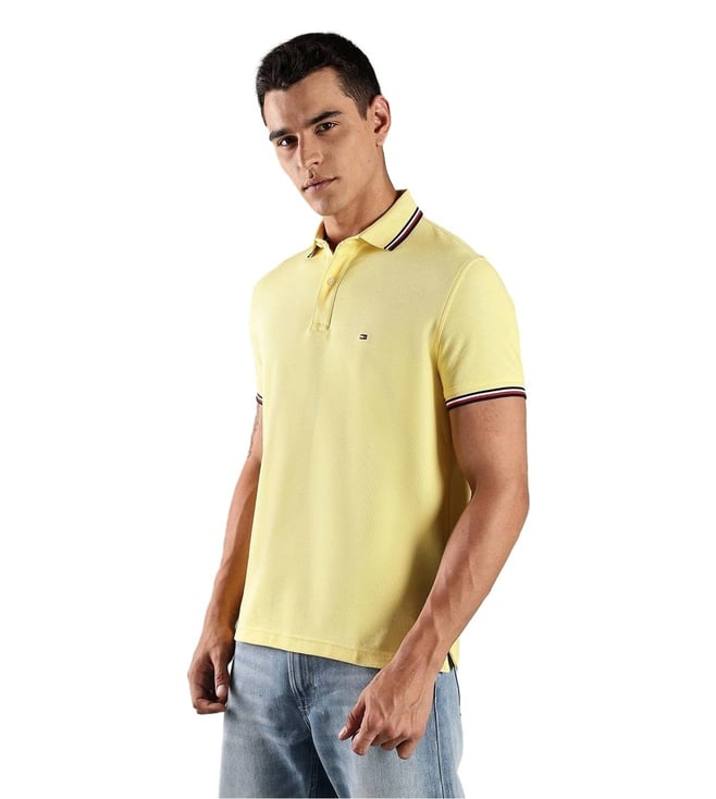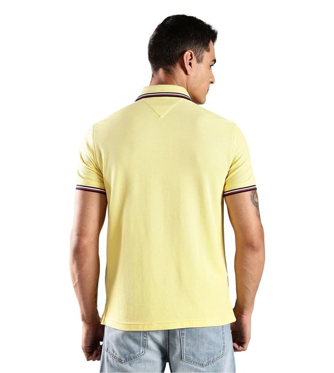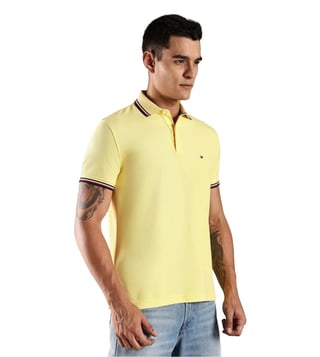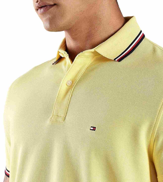 TOMMY HILFIGER Yellow Solid Regular Fit Cotton Polo T-Shirt