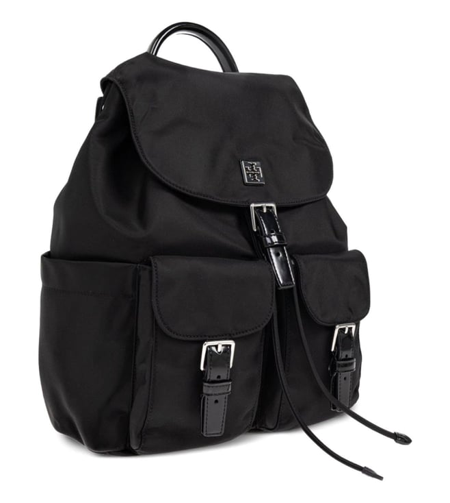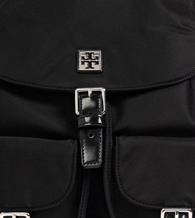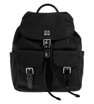 Black virginia Backpack By Tory Burch Featuring A Drawstring And Fold-over Top Closure, Main Compartment, Two External Buckle Pockets, And An Internal Zip Pocket - Backpack - Virginia Model - Black Color - Drawstring Closure - Fold-over Top - Main Compartment With its timeless design and practical features, this bag is a must-have accessory for the modern woman on-the-go.