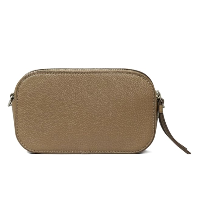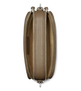 Wild mushroom taupepebbled leather leather trimmicrofiber lining with a suede-like finishdouble zipper closureadjustable, removable webbing crossbody strap2 open compartments, 1 interior back wall slit pocket