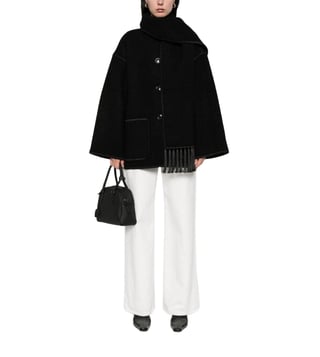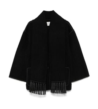 Toteme Black Embroide Scarf Wool Flared Fit Jacket