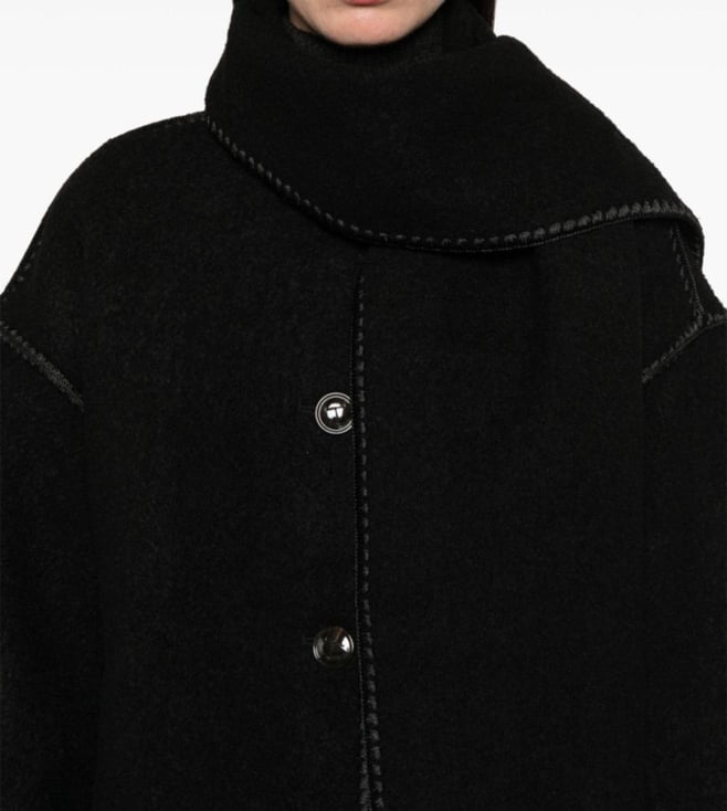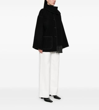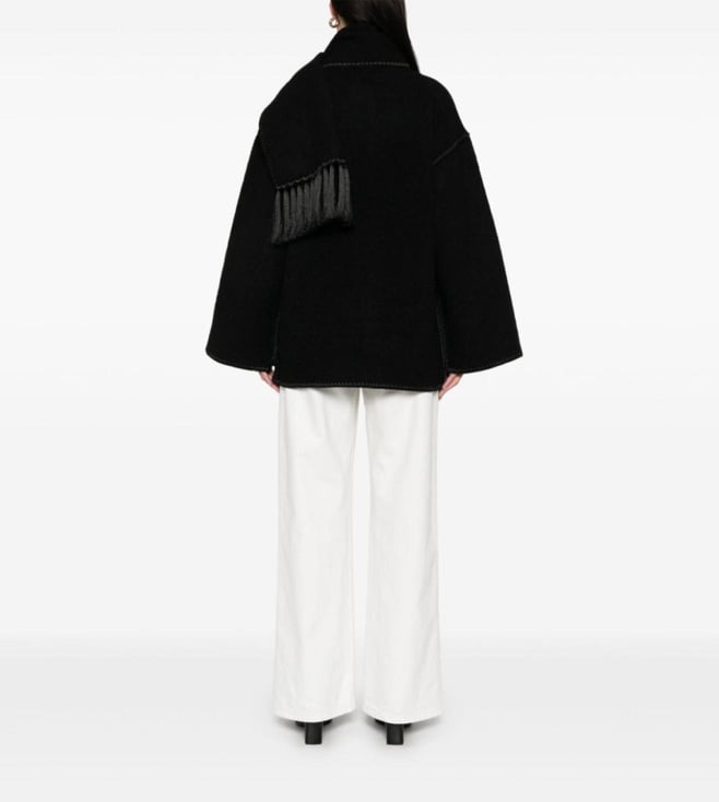 Toteme Black Embroide Scarf Wool Flared Fit Jacket