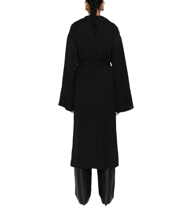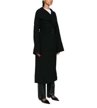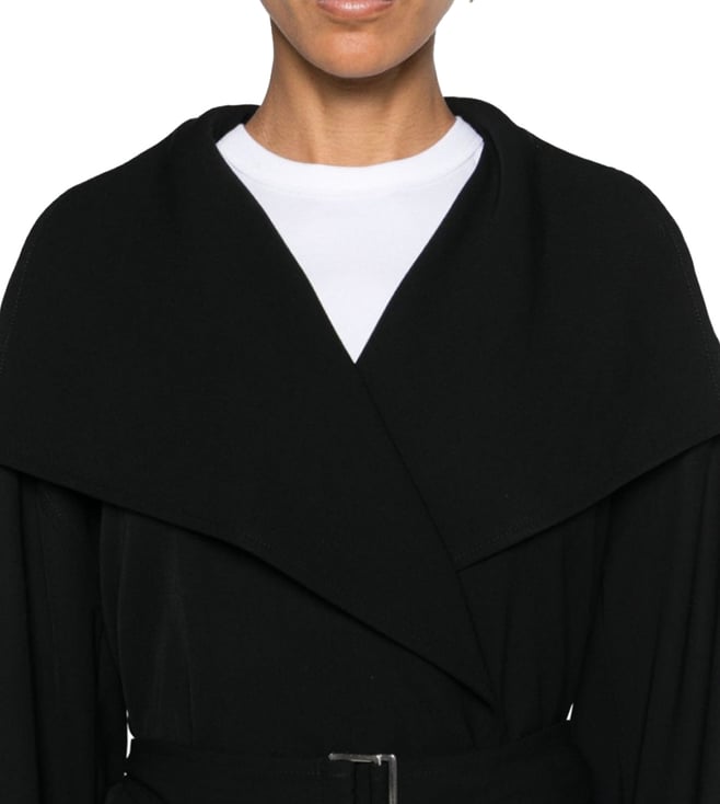Elevate your everyday style with the Toteme Black Removable Belt Trench Coat. Crafted from a luxurious blend of materials, this timeless piece features long sleeves, a chic shawl neck, and a removable belt for versatile styling options. Perfect for daily wear, this coat effortlessly combines comfort and sophistication. With its classic design and modern details, this trench coat is sure to become a staple in your wardrobe, adding a touch of elegance to any outfit. Upgrade your look with this must-have piece that will keep you stylish and cozy all season long.