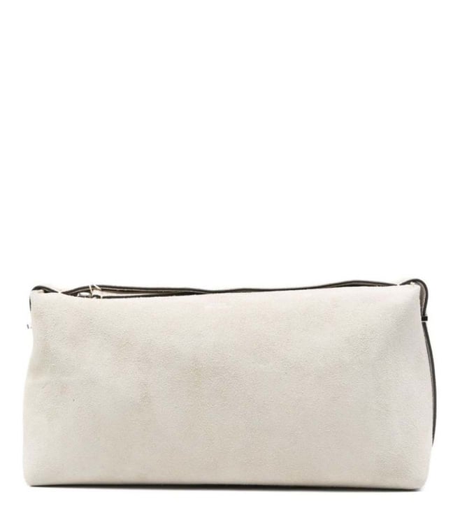 Beige Scoop Suede Clutch