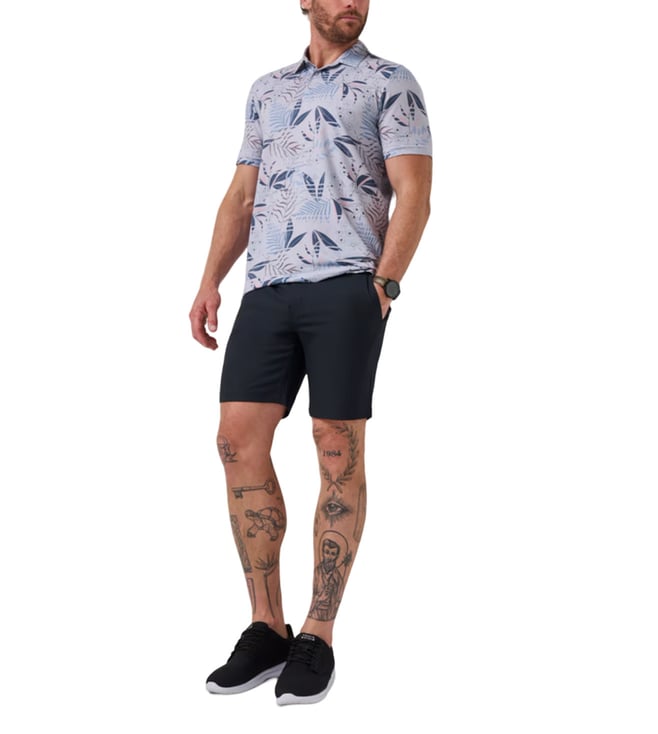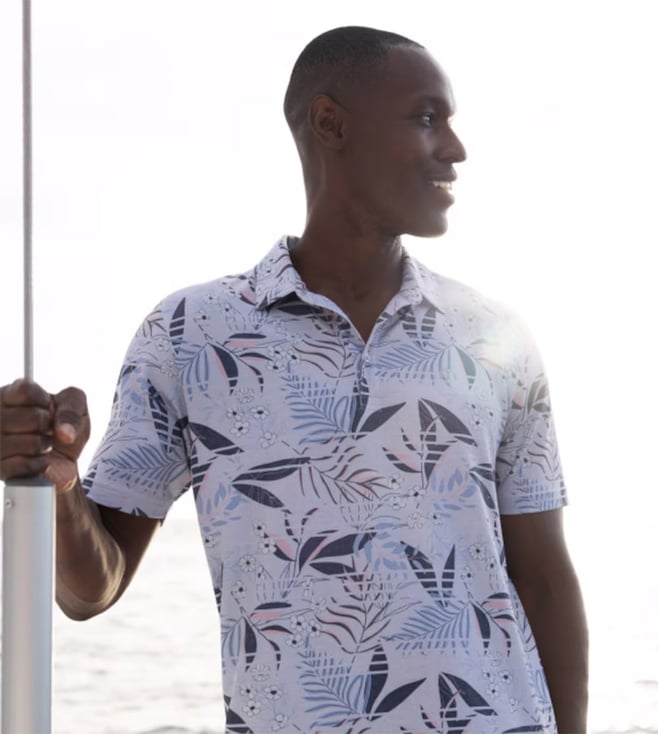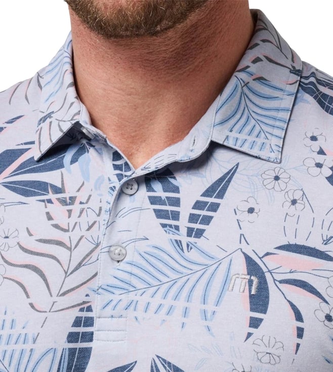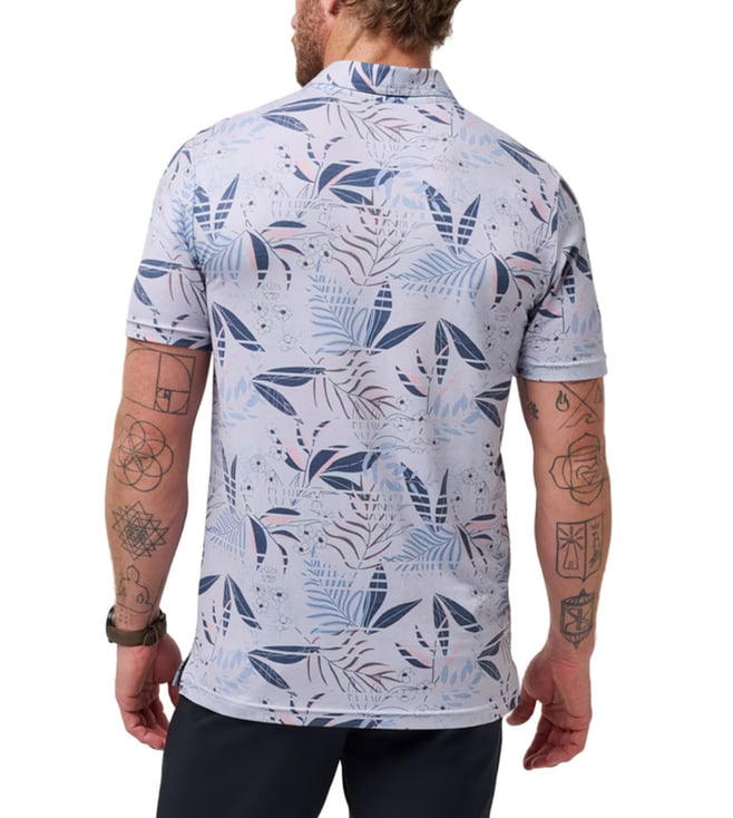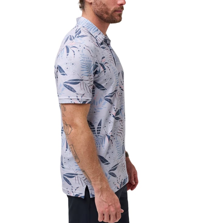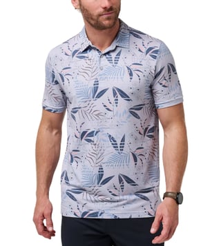 Travis Mathew Heather Light Grey RIP Current Tropical Print Classic Fit Polo T-Shirt