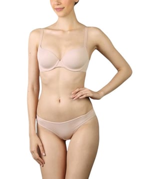 Triumph brings you this beige bra that combines the latest style and extreme comfort. Made from gentle and fine fabric, this bra is comfortable to wear and stylish in look.