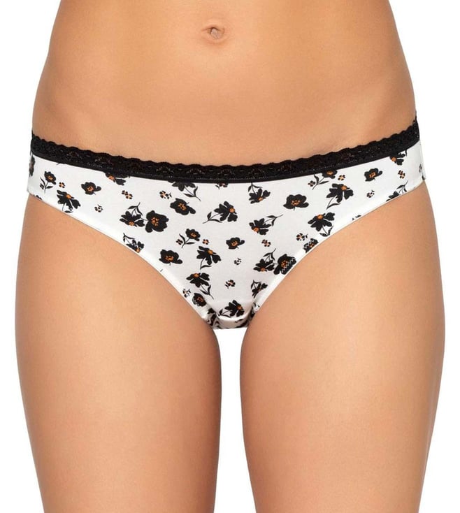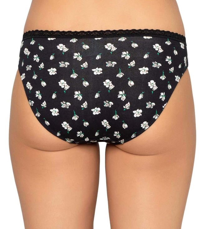 Triumph Black & White Cotton Floral Print Hipster Panties - Pack Of 3