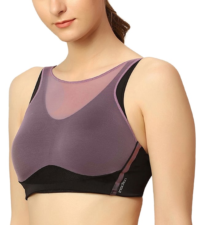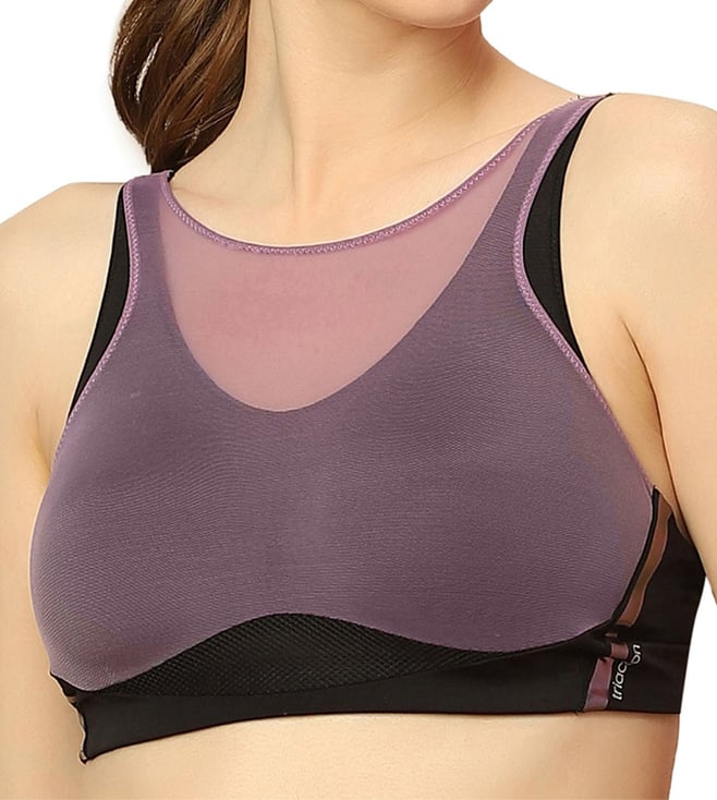 Get ready to be overwhelmed with a flurry of compliments by wearing this black sports bra from Triumph. Tailored to sartorial perfection from high quality fabric, it assures a gentle and soothing touch against the skin. The flattering neck adds to its appeal.