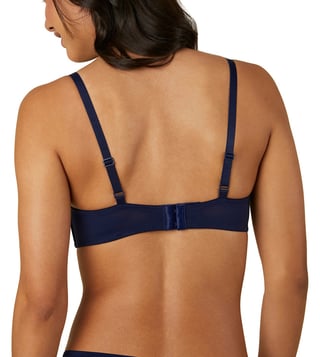 Conduct your days in stylish comfort with this awesome blue t-shirt bra from the latest collection of Triumph. Crafted in fine quality stretch polyester blended with polyamide for softness and a smooth feel backed by lasting strength, it's thoughtfully designed silhouette, complemented by functional non-wired and padded features, ensures a natural fit with minimum bounce and maximum ease. Combine it with all your outfits for a confident look.