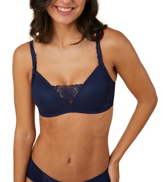 Triumph Blue Lace Non-Wired Full Coverage T-Shirt Bra