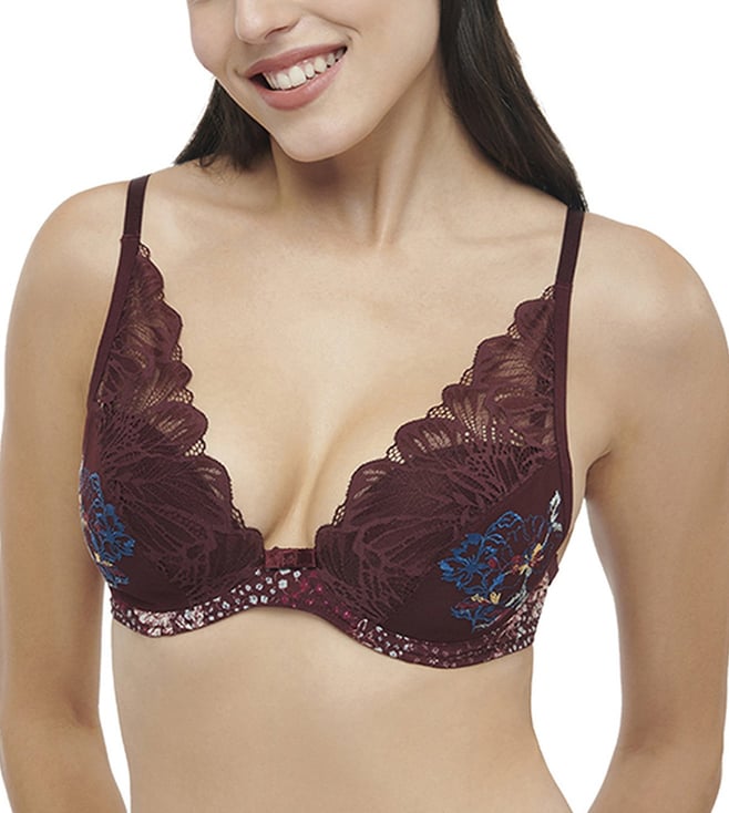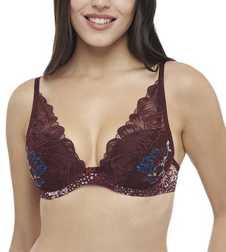 Stylize your lingerie wardrobe with this brown bra from Triumph. Tailored to sartorial perfection from premium quality fabric, it assures a soft and soothing touch against the skin. The lace pattern lends it a finial touch.