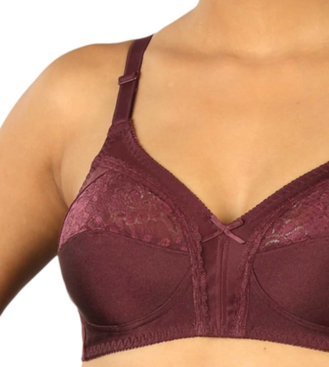 Triumph Maroon 103 Non-Wired Non-Padded Lace Minimizer Bra