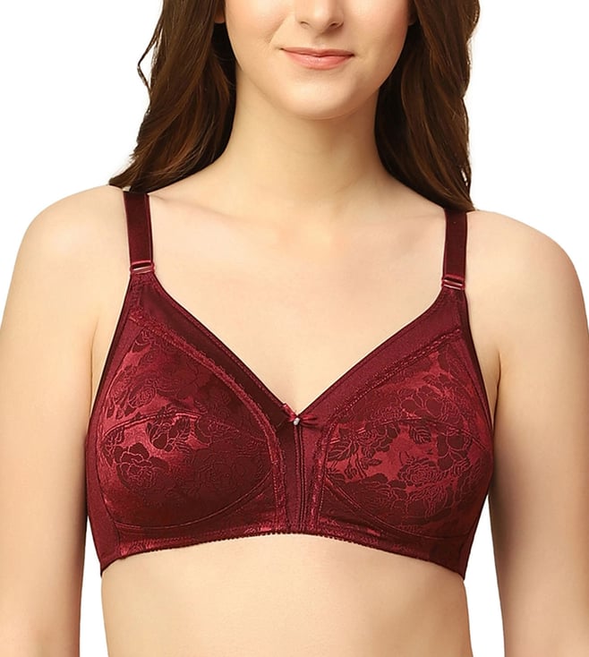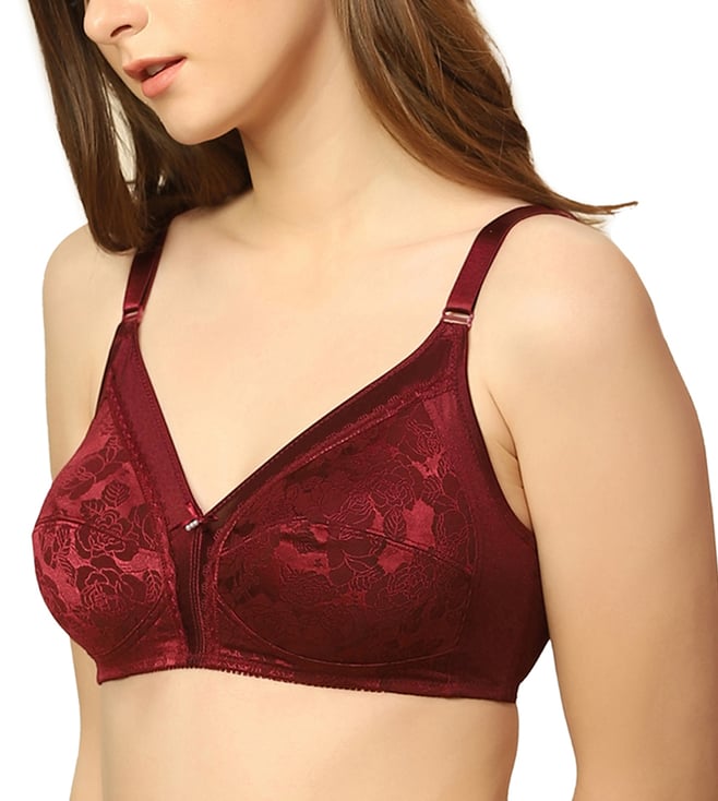 Triumph Maroon Wireless Non Padded Lace Everyday Bra