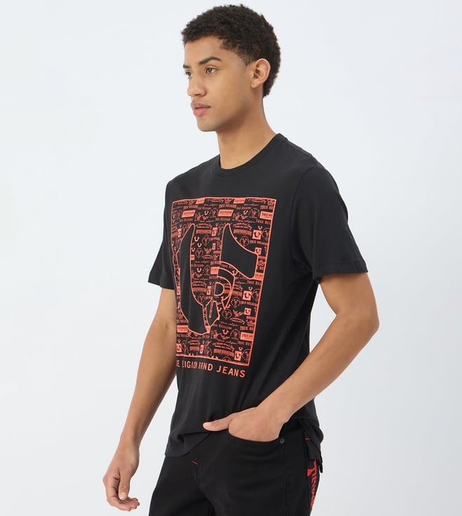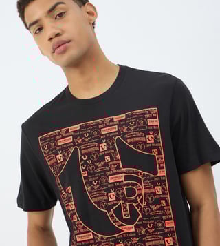 True Religion Black Pure Cotton Slim Fit Printed T-Shirt