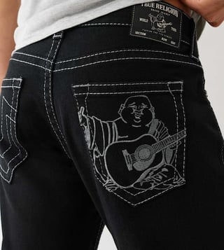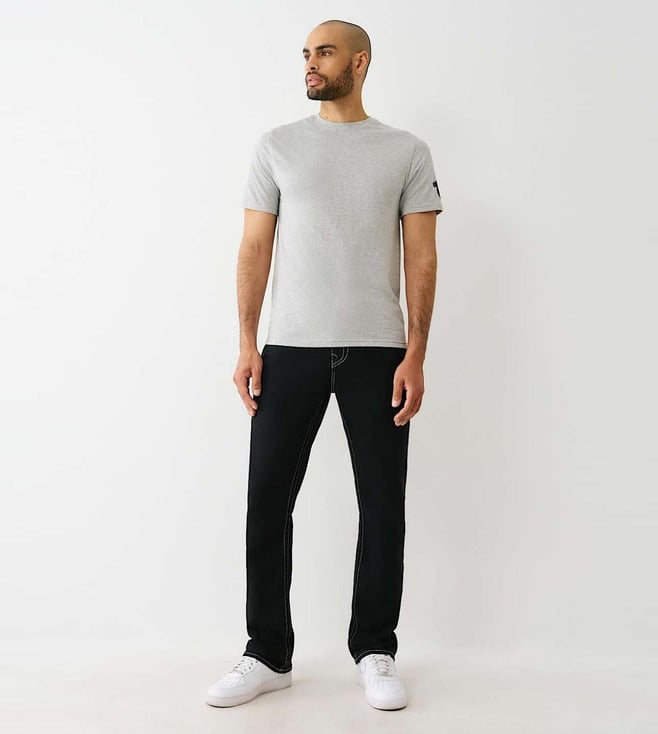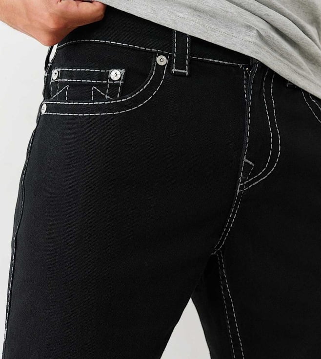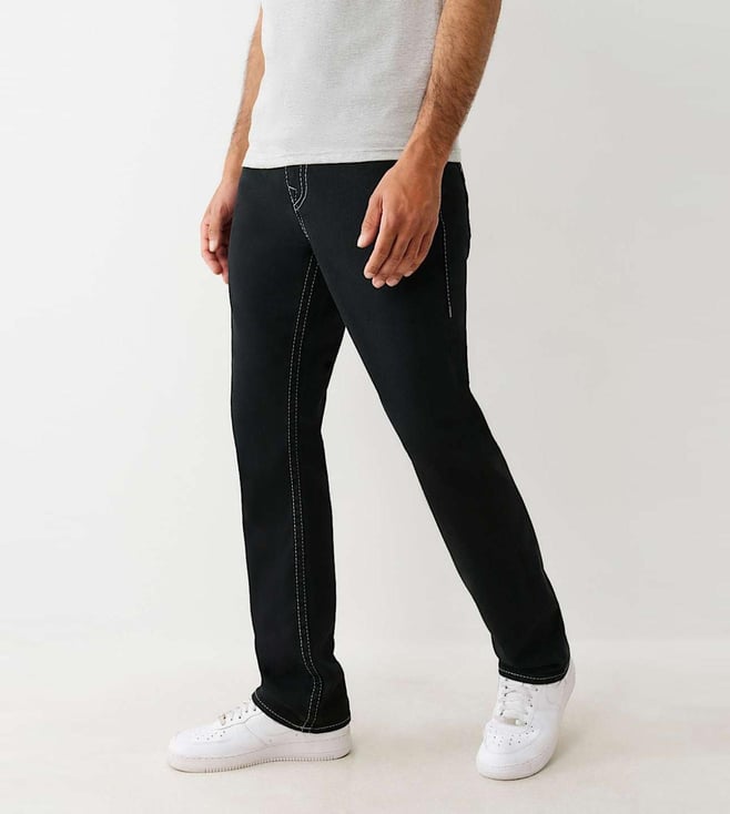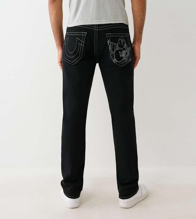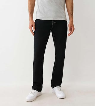 A Comfortable Pair Of Ricky Solid Black Jeans By True Religion That Comes In A Classic Straight Fit And Feature Tonal Embroidery For Subtle Character. Designed With A Mid-Rise Waist, They Offer A Clean Silhouette Perfect For Daily Wear. Made From Soft Cotton, They Feel Breathable And Comfortable Throughout The Day. Their Timeless Look Makes Them An Easy Match For A Variety Of Outfits, Whether You'Re Dressing Up Or Going Casual. With Just The Right Amount Of Detail, They Elevate Your Wardrobe Basics. Pair With A Crisp White Tee And Black Sneakers For A Fresh, Go-To Outfit.