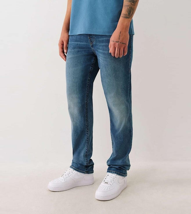 Make A Statement With These Geno Washed Skinny Fit Jeans By True Religion That Feature A Washed Blue Base With Signature Sn Styling For Added Edge. Crafted From A Comfortable Cotton Blend, They Hug The Body Without Feeling Restrictive. The Mid-Rise Waist Keeps Things Balanced, While The Sharp Silhouette Brings Modern Appeal. Ideal For Nights Out Or Stylish Weekends, They Deliver A Bold, Confident Fit. With Stretch And Structure, They’Re Built For Ease And Attitude. Combine With A Slim-Fit Tee And Leather Boots To Give Your Look That Extra Definition.