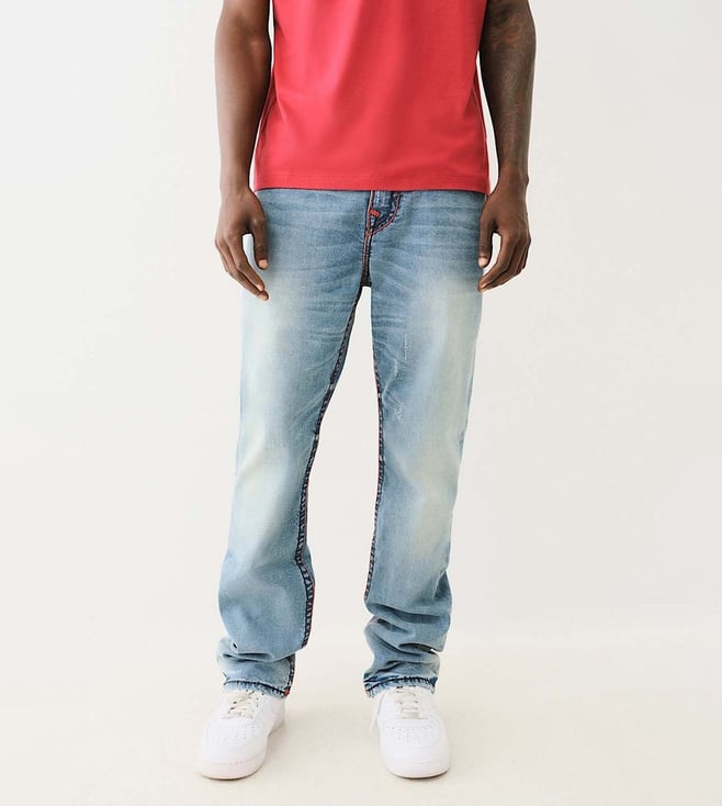 Effortlessly cool, these straight-fit jeans in washed blue are your new go-to. Crafted from a comfortable cotton blend, they feature a mid-rise waist, button and zip closure, and a classic straight leg for a timeless look. Perfect for casual days or dressed-up nights, these jeans offer both style and comfort.