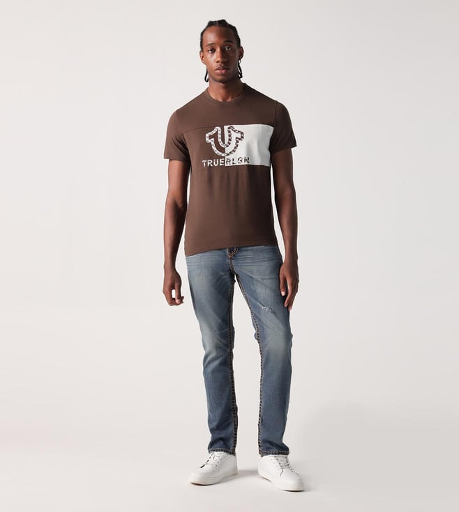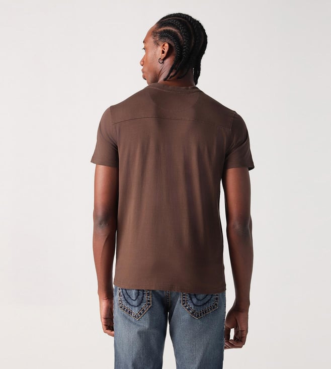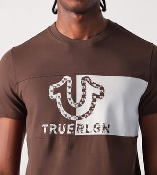 This pullover knitted logo crew neck T-shirt features short sleeves and a regular fit for all-day comfort. The iconic True Religion logo adds a touch of sophistication to this versatile piece. Perfect for everyday wear. This t-shirt effortlessly combines style and comfort, making it a must-have addition to your wardrobe. Upgrade your look with this classic and timeless piece that will keep you looking stylish and feeling confident.