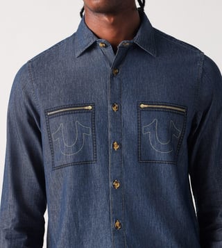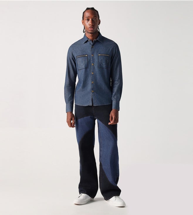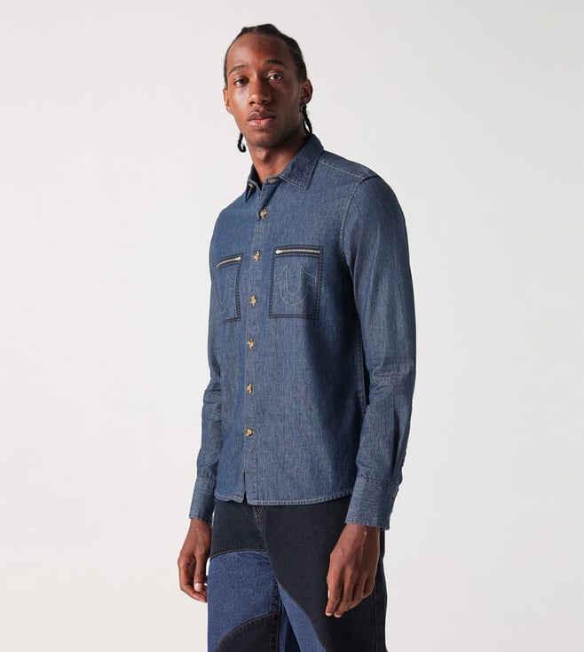 This TRUE RELIGION Men's Denim Blue Cotton shirt crafted from high-quality cotton. This solid shirt features a classic collar, long sleeves, and a regular fit for all-day comfort. The button-up design adds a touch of sophistication, making it perfect for both work and weekend wear. Whether you are dressing up for a night out or keeping it casual. This versatile shirt is a must-have staple for any modern man's closet. Experience style and quality with TRUE RELIGION.