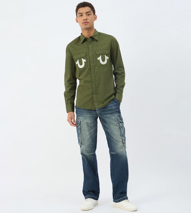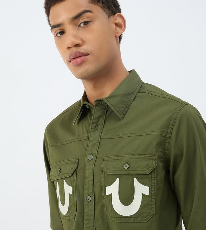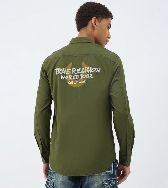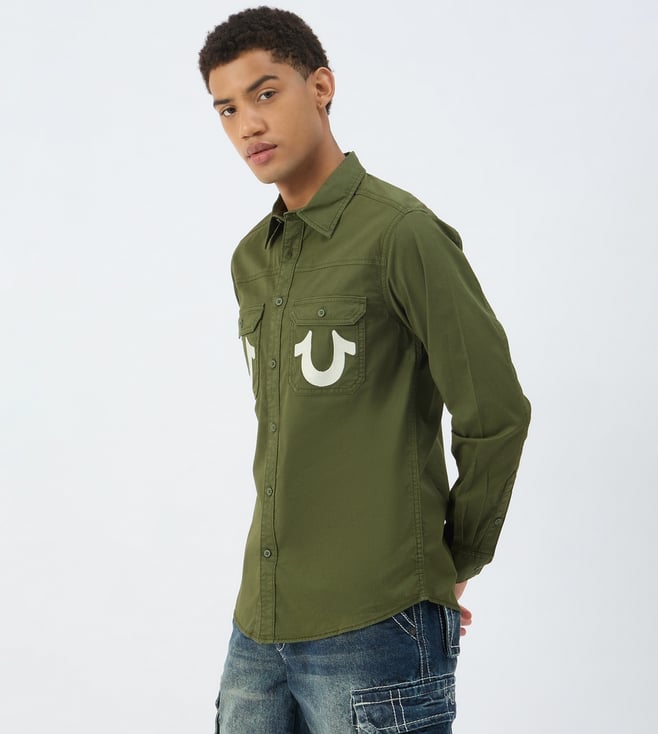 True Religion Green Pure Cotton Regular Fit Solid Shirt