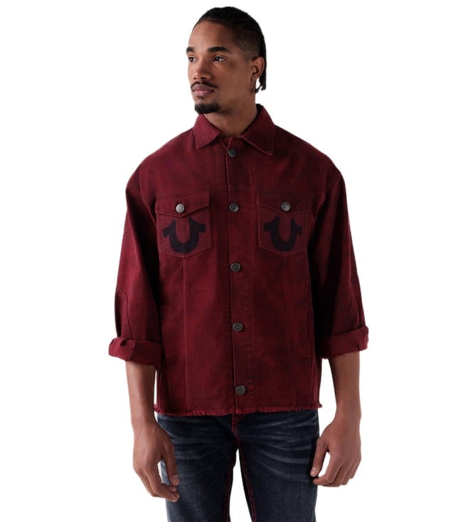Men Maroon Relaxed Fit Denim Jacket