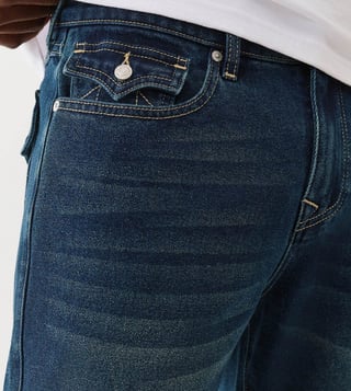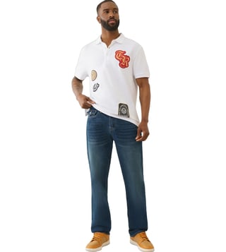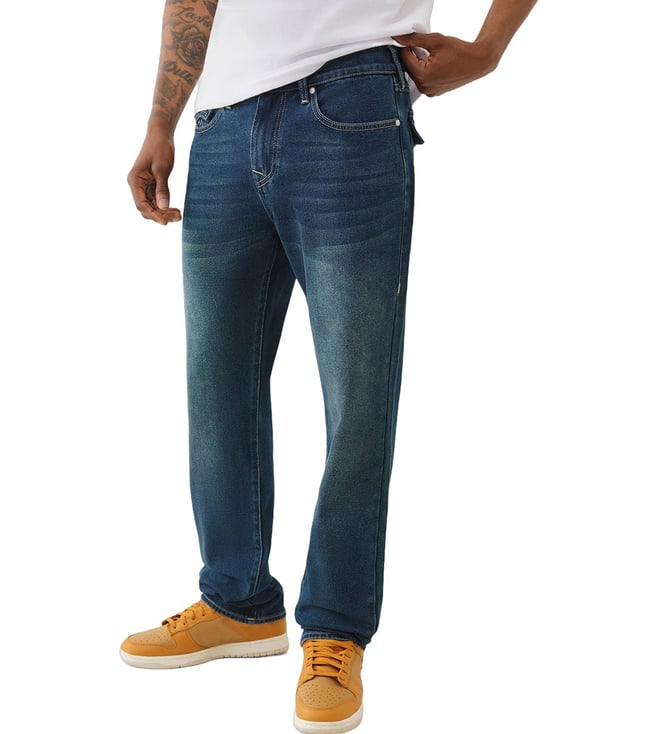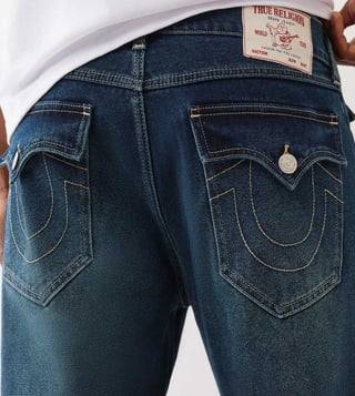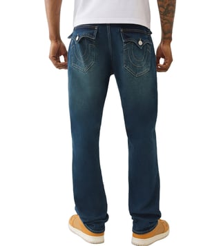TRUE RELIGION Men Ricky SN Blue Jeans is crafted with quality materials and a timeless design. This jeans offer the perfect blend of style and comfort. The slim fit silhouette and classic blue wash make them a versatile wardrobe staple. Whether you are dressing them up for a night out or keeping it casual. This jeans will keep you looking sharp and feeling confident.