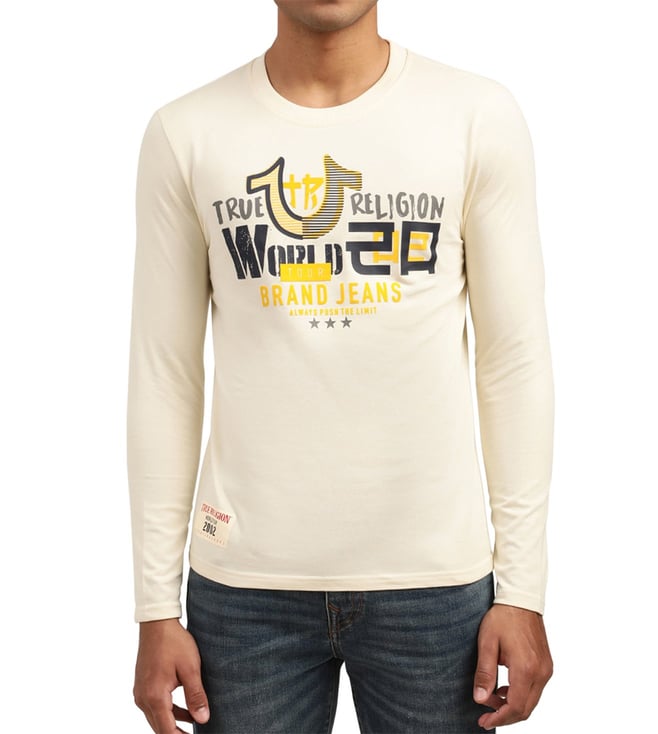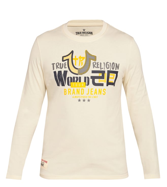 The long sleeve logo t-shirt is a true closet essential. It is designed with True Religion lettering design across the front. Versatile for lazy days spent at home and even to wear out to a coffee shop.