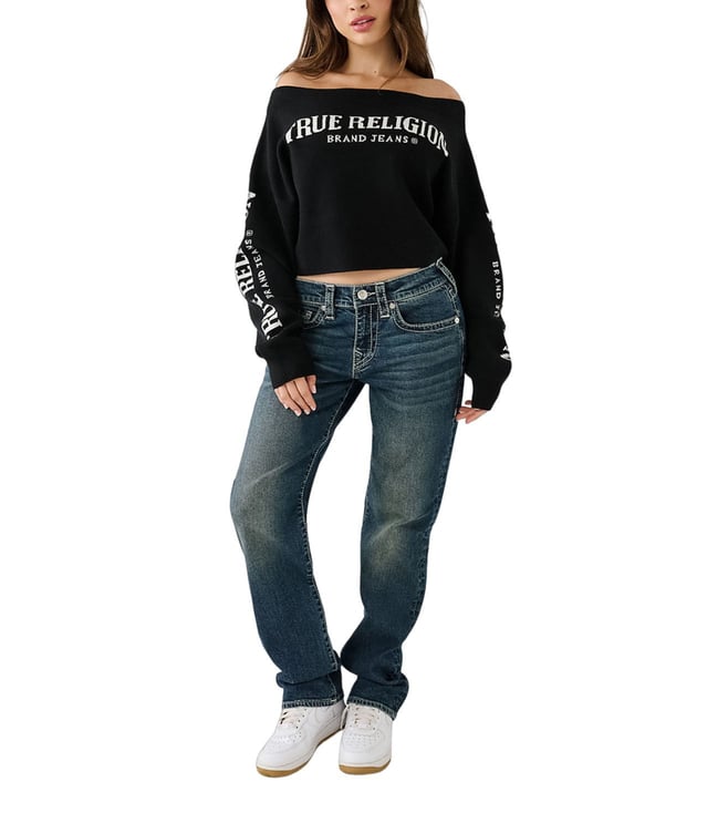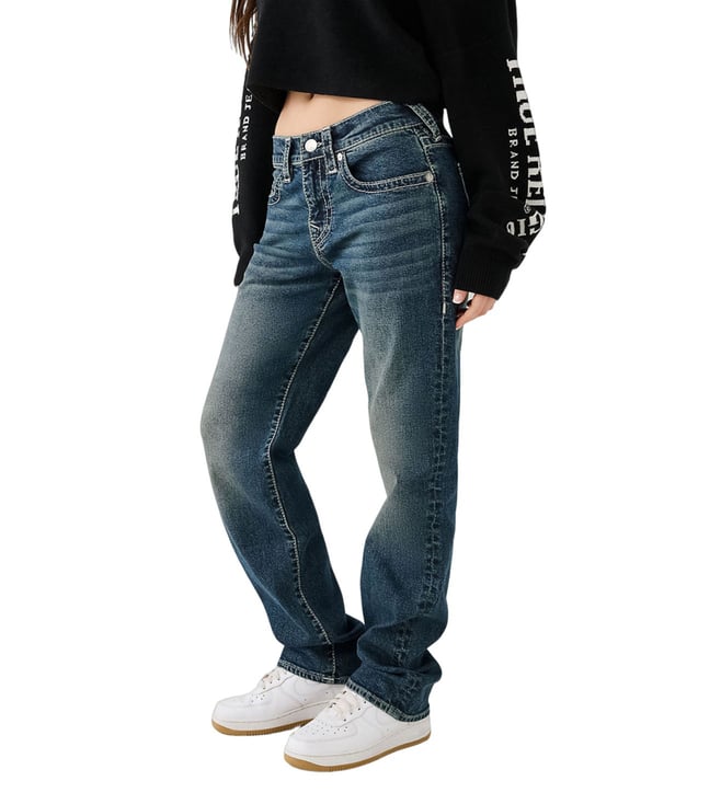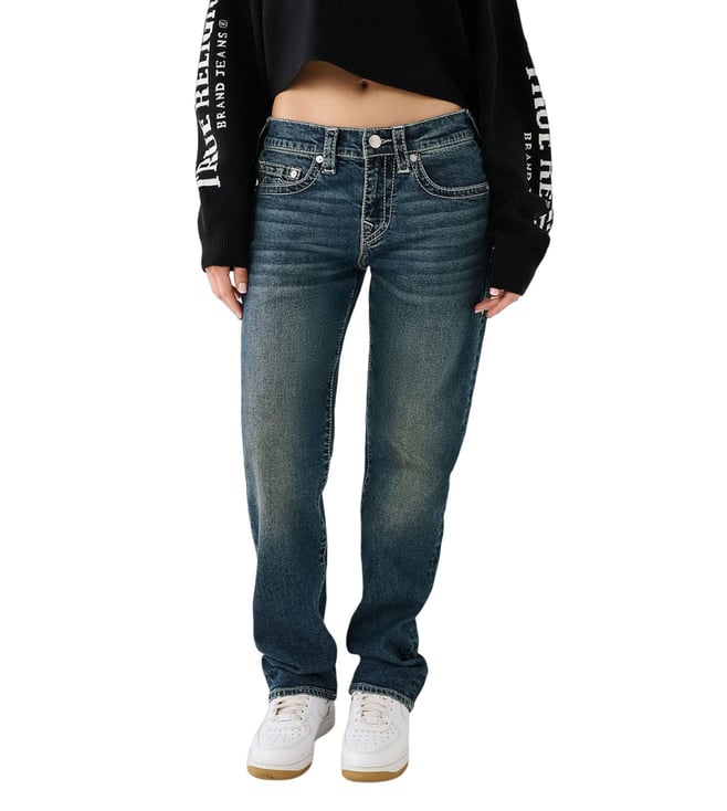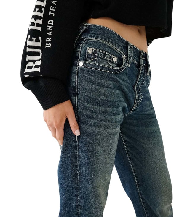 True Religion SN Ricki Relax Straight Blue Mid Rise Jeans