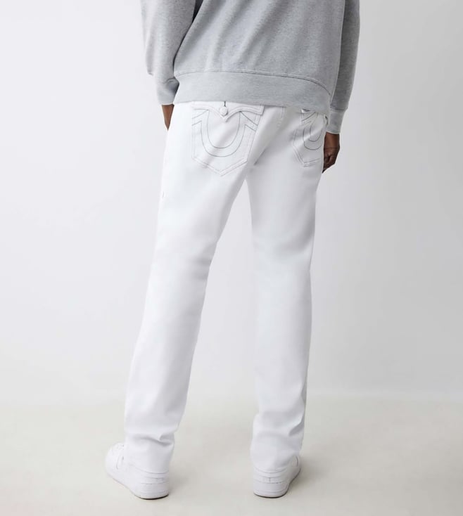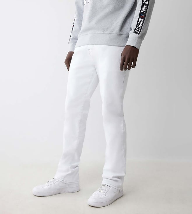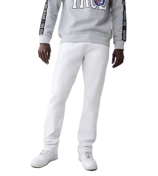Embrace the crispness of white with these straight-fit jeans, crafted from pure cotton for ultimate comfort. The solid, timeless design offers a clean canvas for any style, from casual to smart. The mid-rise waist provides a flattering fit, while the straight leg ensures a classic silhouette. These jeans are your go-to for effortless style, perfect for everything from weekend adventures to city strolls.