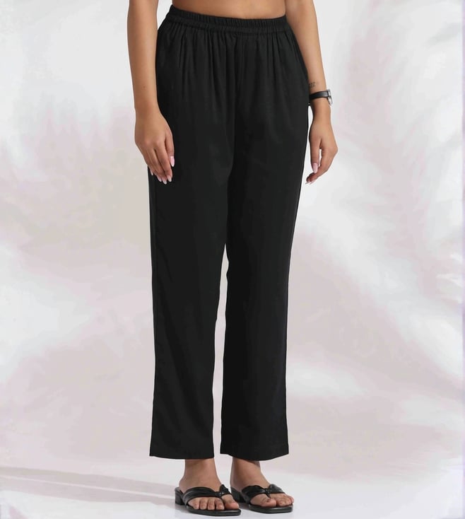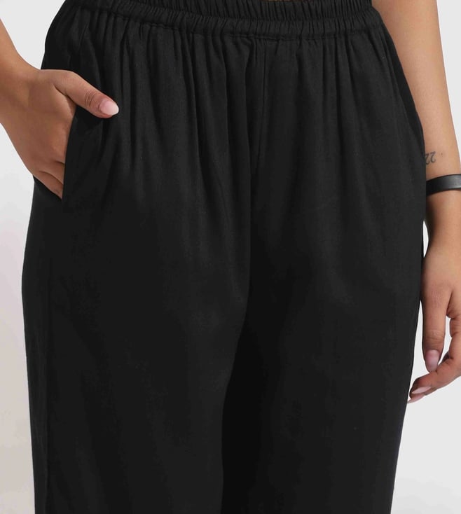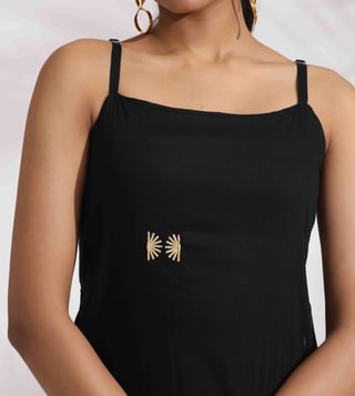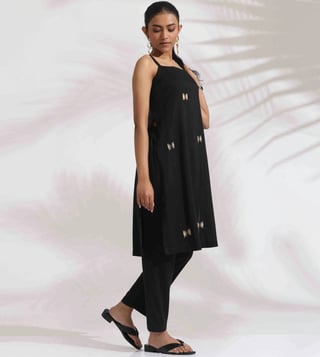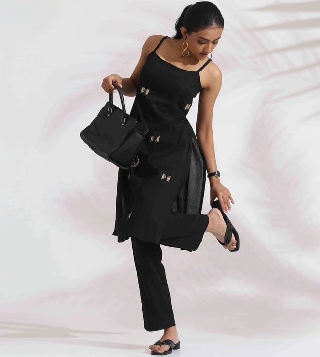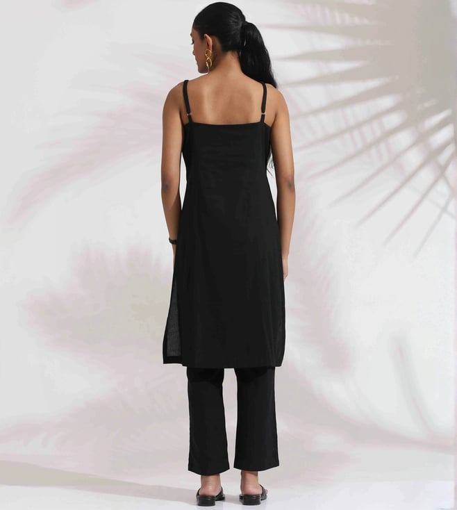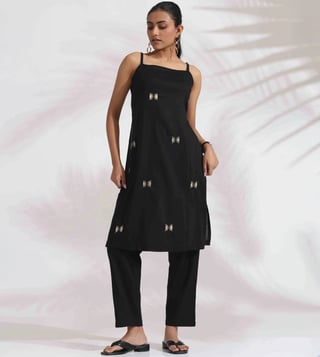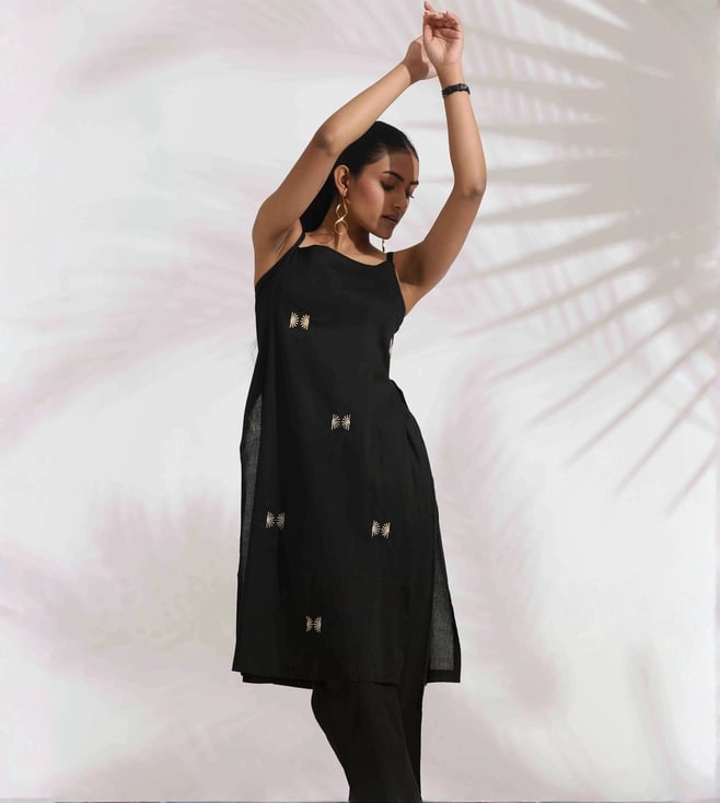TrueBrowns Black Cotton Embroidered Straight Kurta Set