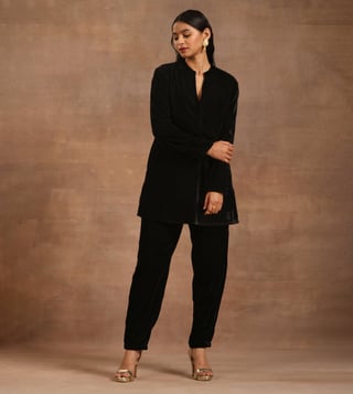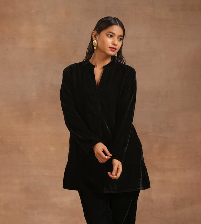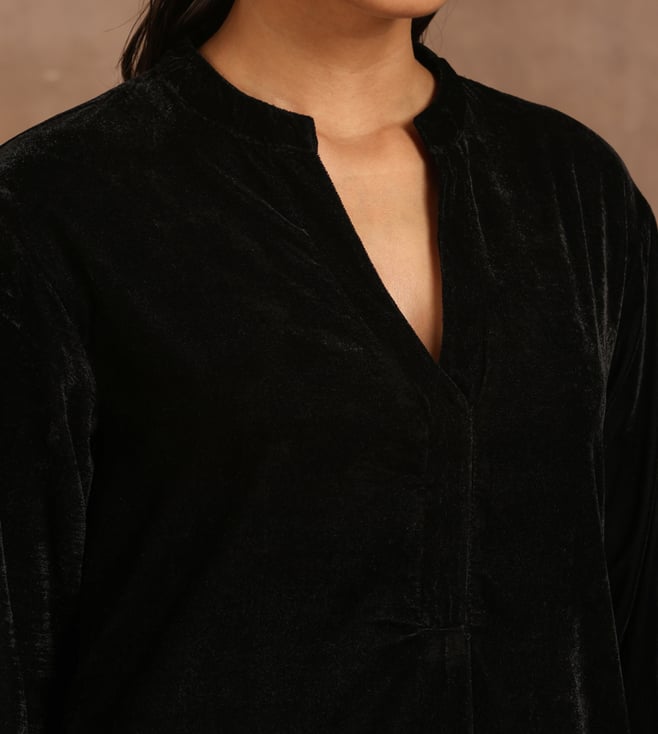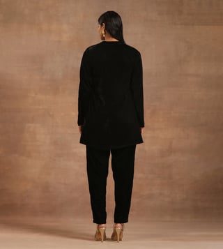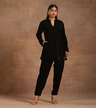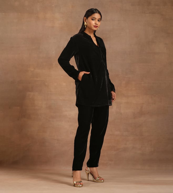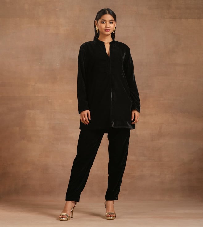 TrueBrowns Black Velvet Solid Tunic With Pant Co-ord Set