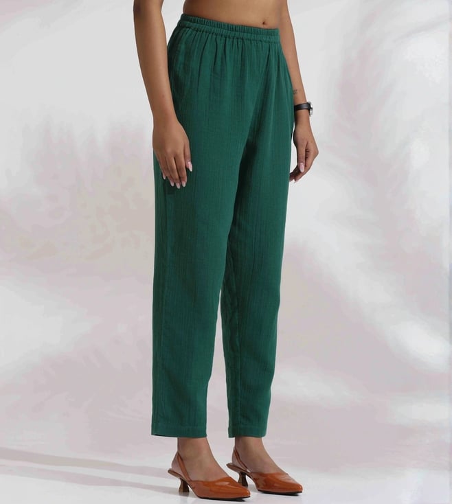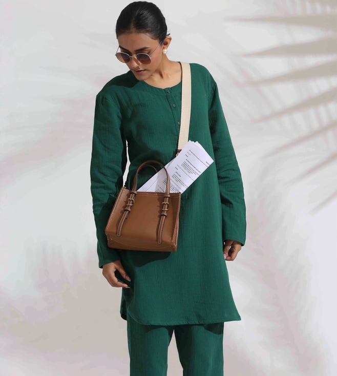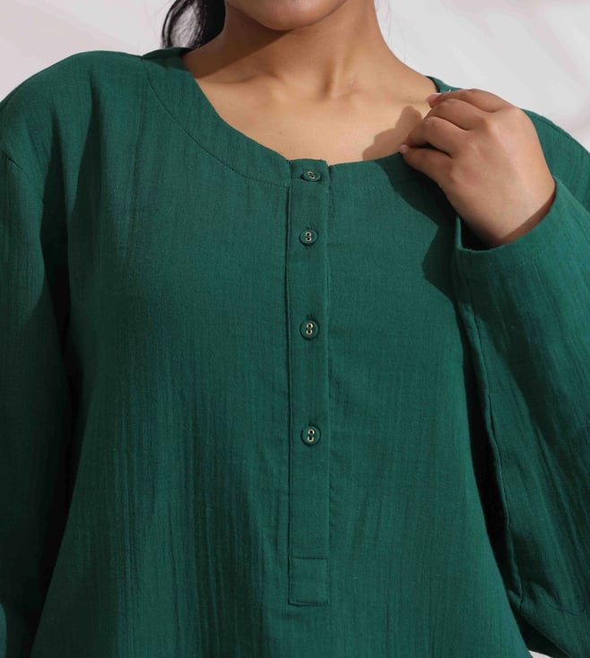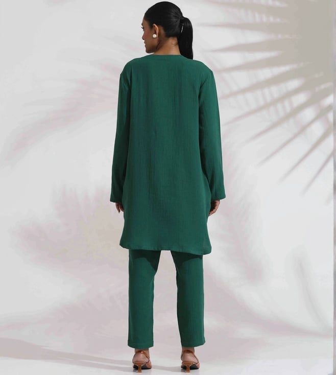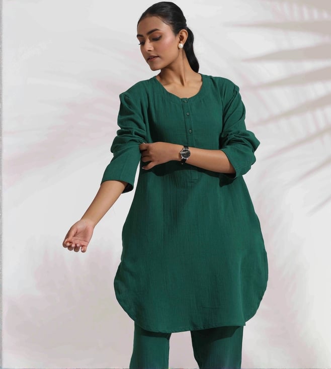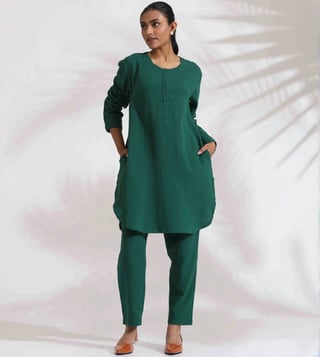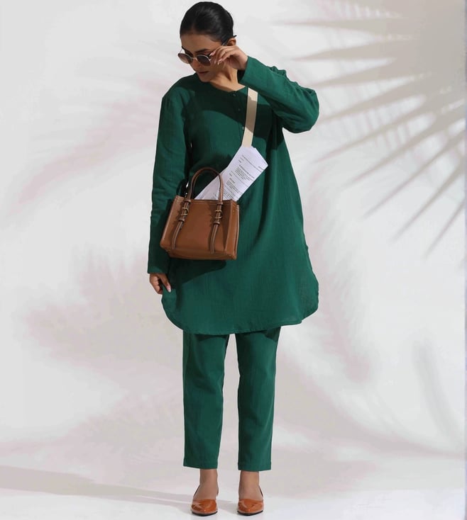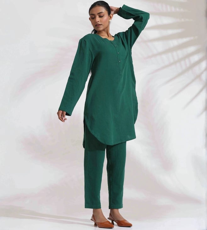 TrueBrowns Green Cotton Kurta Co-ord Set