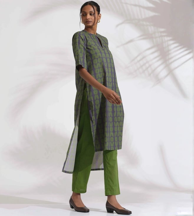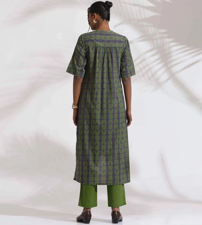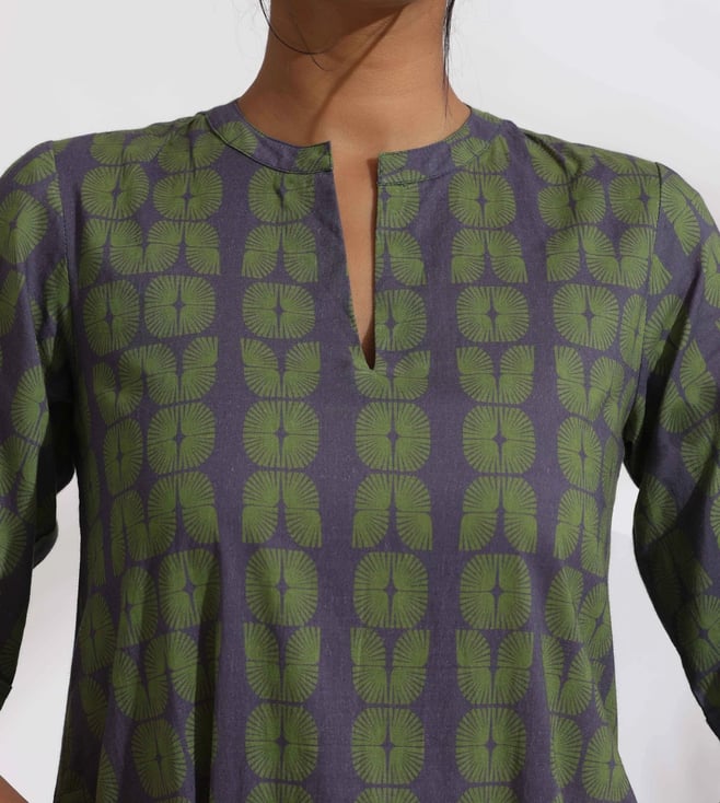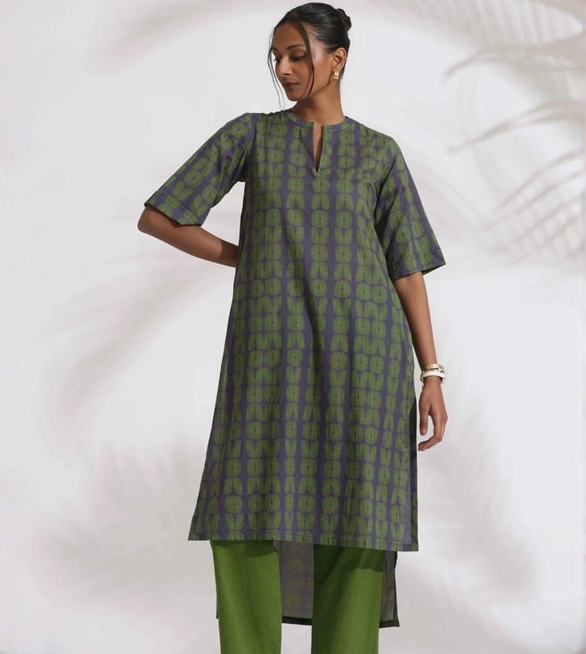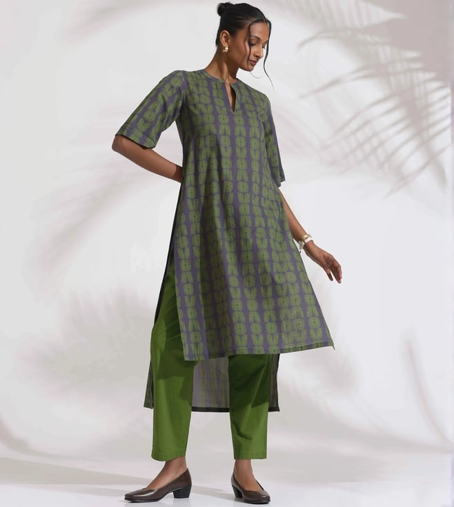 TrueBrowns Grey Cotton Print Highlow Kurta Set