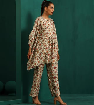 Curate an exquisite look with thick-ord set from the Rutba collection. It is made using premium-quality muslin silk. Disclaimer: Product colour may slightly vary due to photographic lighting sources. Country of Origin - India.