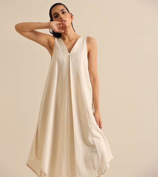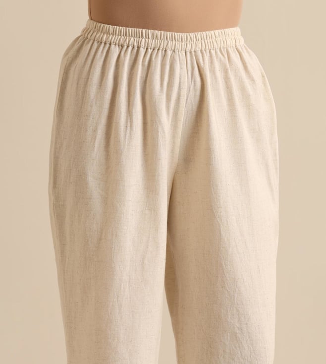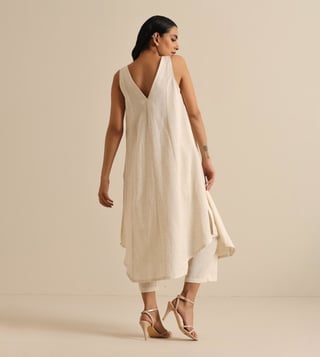 TrueBrowns Off-White Umang Sleeveless Khadi Kurta with Pant
