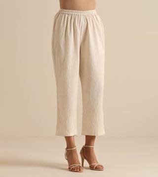 Augment your look by wearing this cotton kurta and pants set from the Umang collection. The pants have an elasticated waist. Style it with a pair of mules to complete the look. Disclaimer: All other items in the image are only for display purposes and will not be a part of the delivery content. Product colour may slightly vary due to photographic lighting sources. Country of Origin - India.