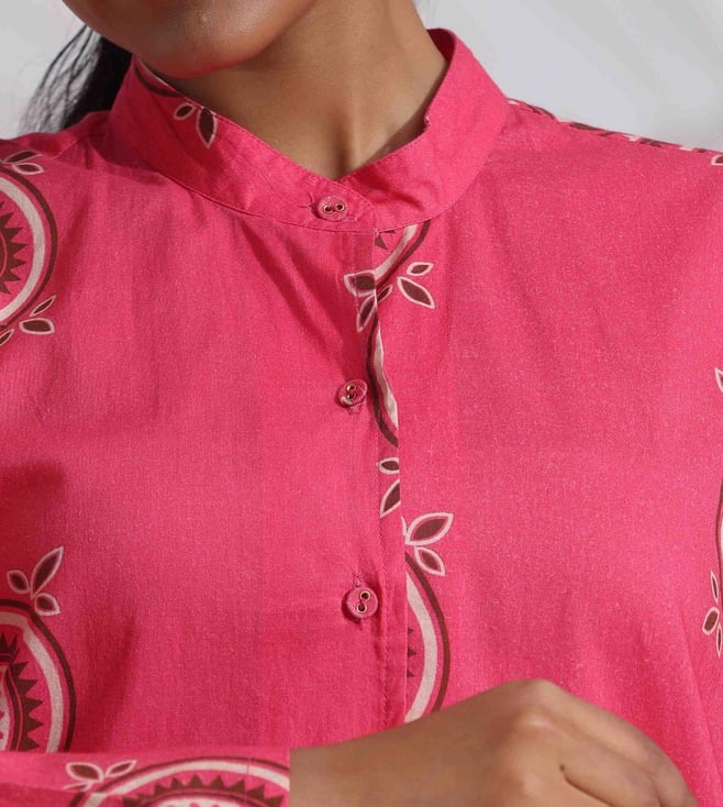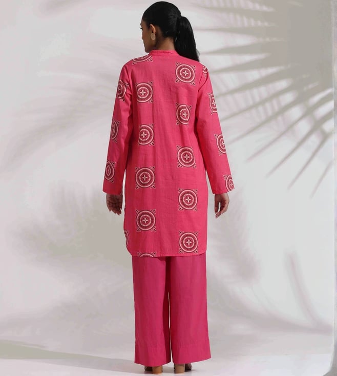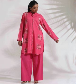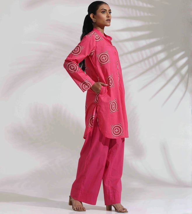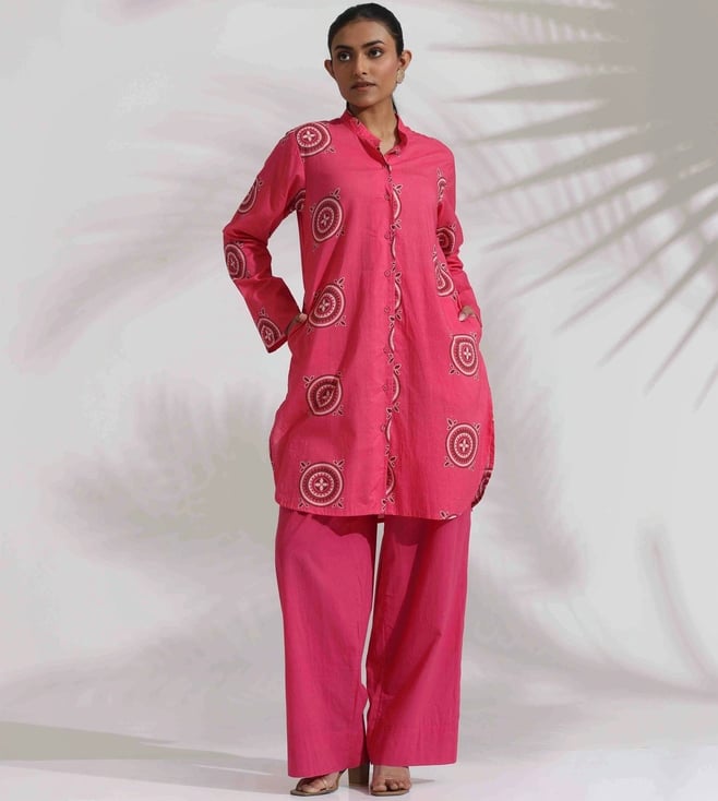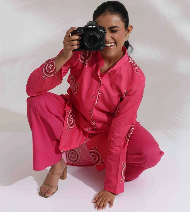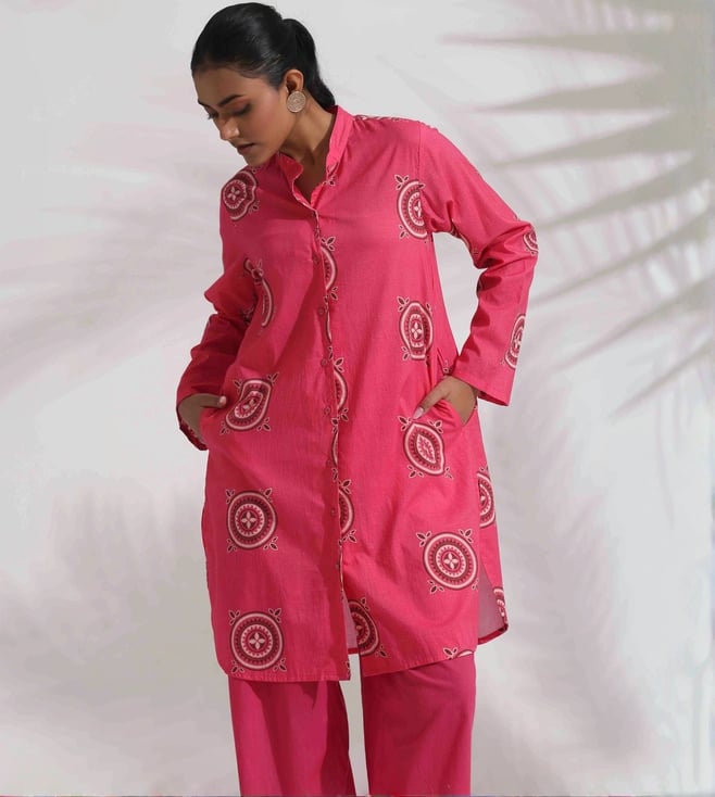 TrueBrowns Pink Cotton Print Kurta Co-ord Set