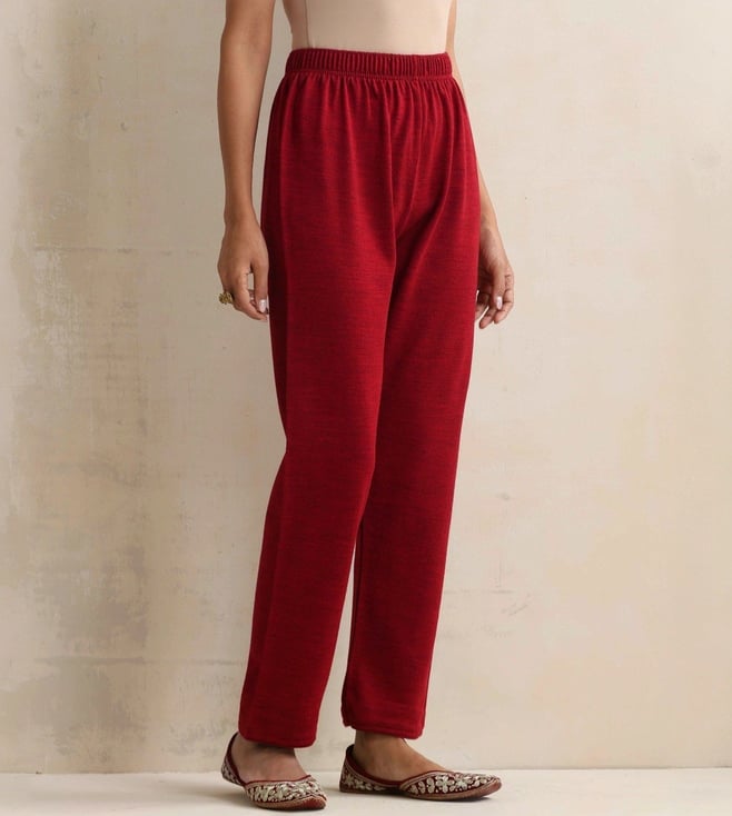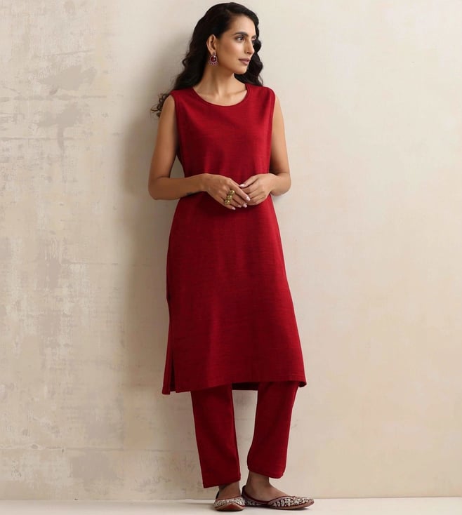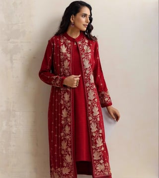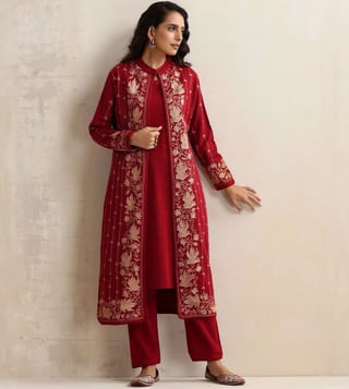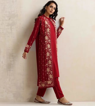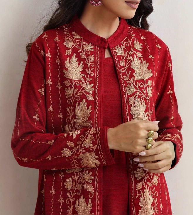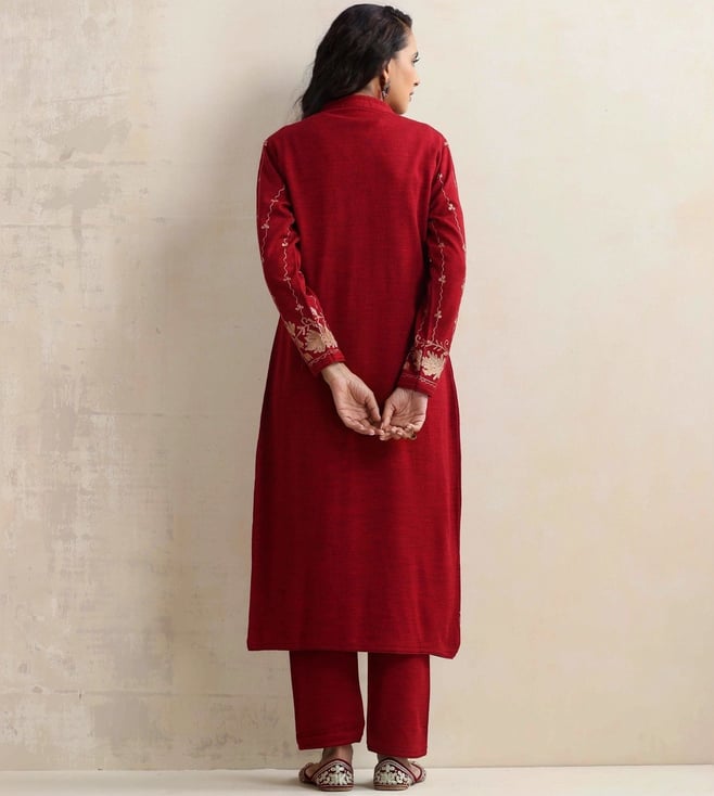 TrueBrowns Red Kashmiri Woollen Jacket Set with Kurta & Pant