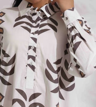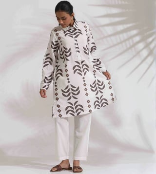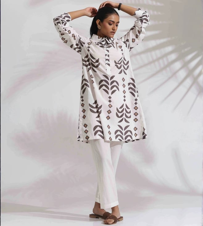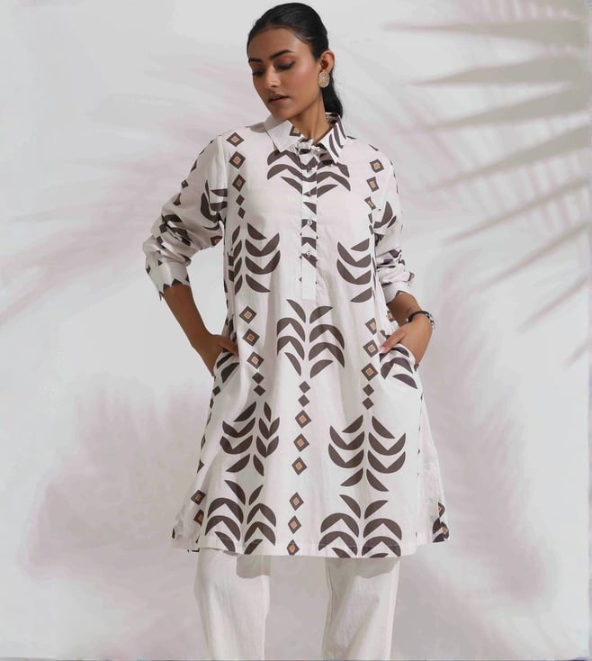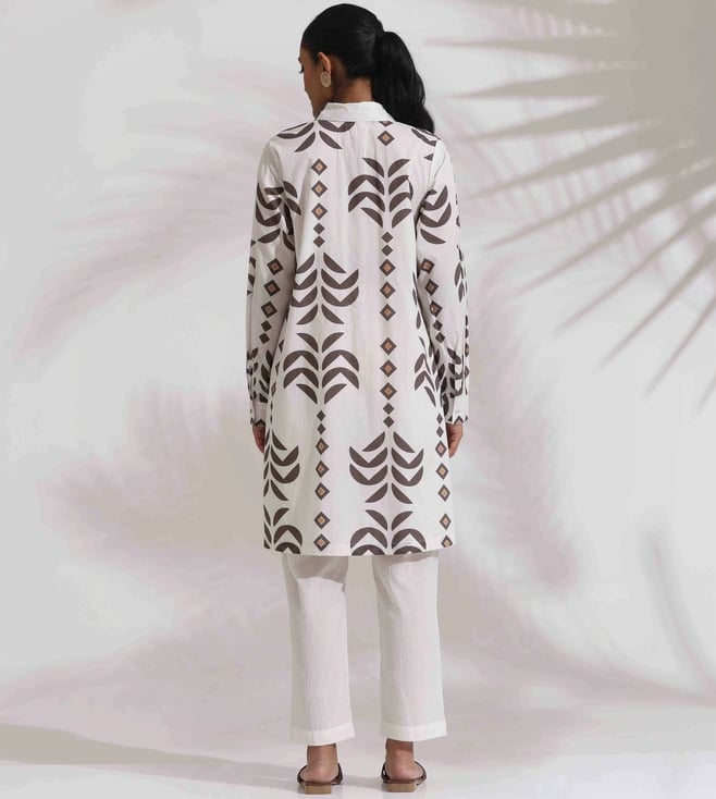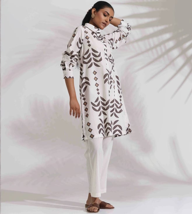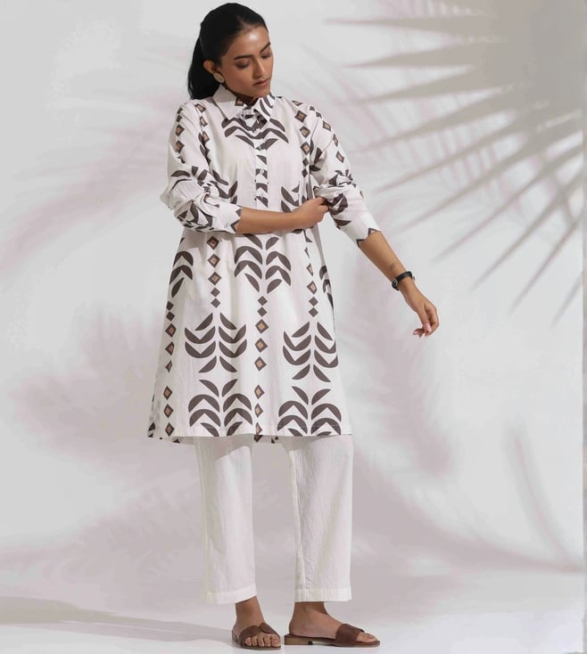 White Cotton Stripe Print Kurta Co-ord Set