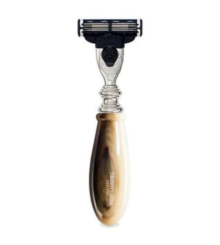 Truefitt's "Regency" style razor with Mach III head. Made in the UK, the specially weighted and ergonomically hand-crafted razor handles are designed to assist in giving you the smoothest, safest shave possible. Available in Faux Ivory, Horn or Ebony with a chrome finish.