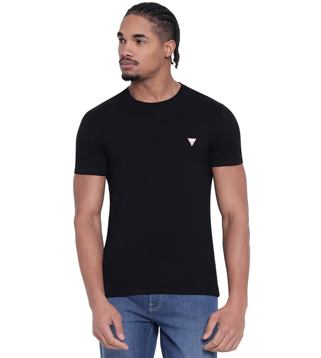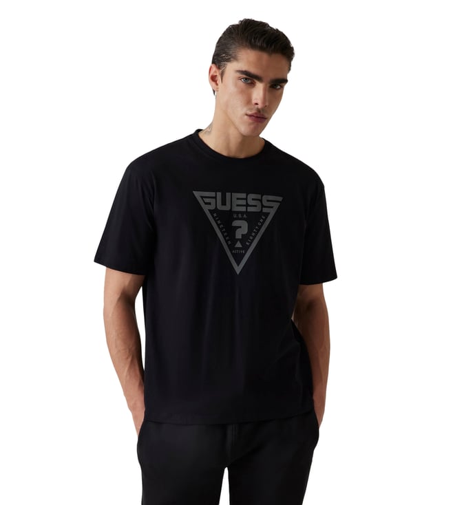 Men Black Logo Crew Neck Regular Fit T - Shirt