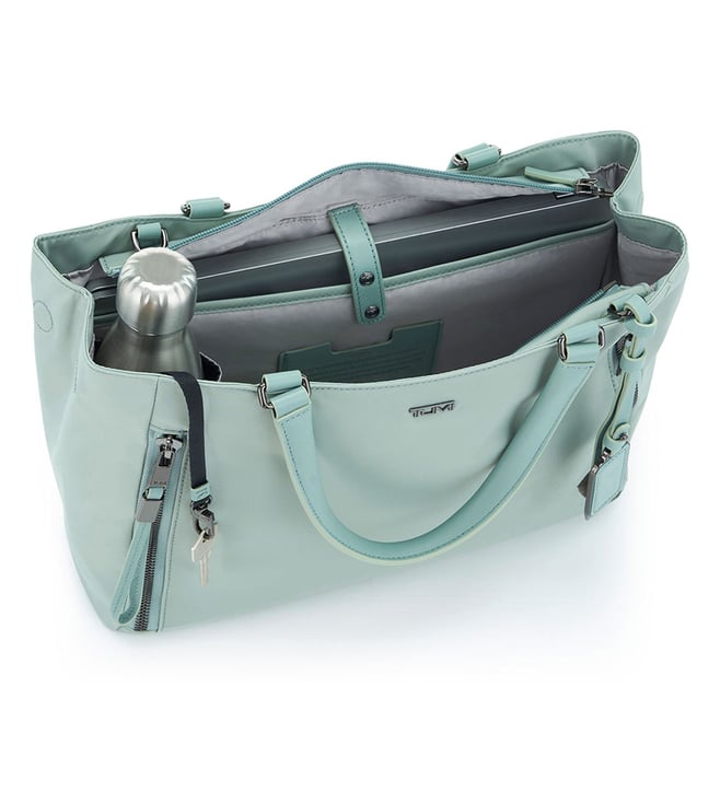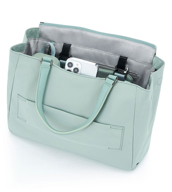 Arrange your valuable belongings in this women's tote from Tumi and walk in style. It features a zip closure for added attraction. Exuding an urbane feel, it is detailed with compartments and pockets to accommodate daily essentials in a safe manner. Made of premium quality nylon for durability and for carrying comfort. A modern take on the classic tote, this lightweight carryall is perfectly sized to hold the day's essentials. It's as stylish as it is functional.