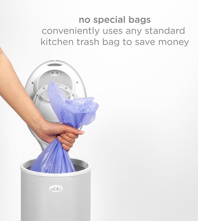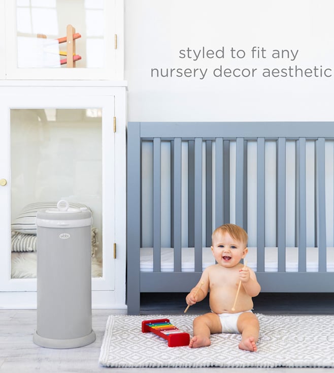 Make your baby's changing time a breeze with this handy diaper pail. The Ubbi diaper pail is made of steel with an airtight lid for maximum odor control. The pail is equipped with rubber seals that lock diaper odors inside the pail, and a sliding lid that minimizes air disruption. Ubbi lets you use any standard trash bag, making it the easiest diaper pail to load, use, and empty. Sleek and modern, the Ubbi diaper pail comes with a child-proof lock and is available in a bunch of colors and patterns. With all the style and no smell Ubbi is a promising solution for every nursery.
