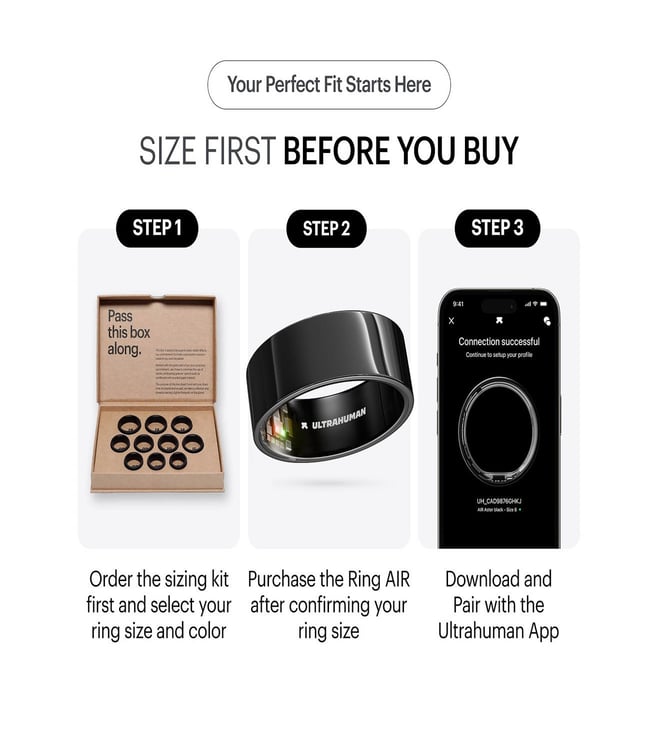 ULTRAHUMAN Ring Air - Sleep and Fitness Tracker, Up To 6 Days Battery Life - Aster Black, Size 9