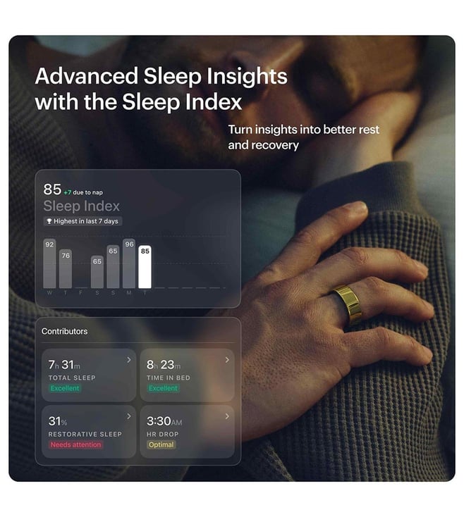 Step into a new era of health monitoring with the ultrahuman smart ring. Designed for both men and women, this sleek fitness ring is your perfect companion for a healthier, more balanced life. Combining cutting-edge technology with sophisticated design, it offers comprehensive insights into your sleep, recovery, and overall wellness. The ultimate form factor for sleep and recovery tracking. Unmatched accuracy for health tracking