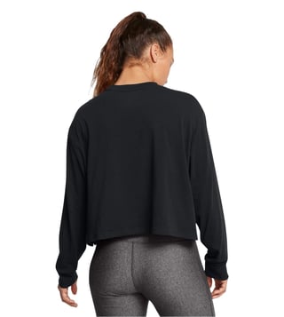 With a minimalistic appeal, this black regular fit sports t-shirt from UNDER ARMOUR is a perfect melding of style and comfort. Tailored to sartorial perfection from premium quality fabric, it assures a soft and soothing touch against the skin. The round neck adds to its appeal.