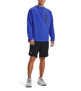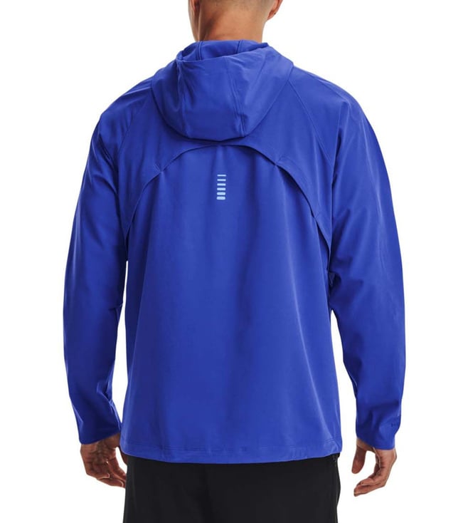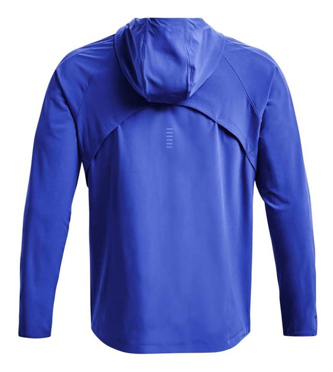 UA Storm technology repels water without sacrificing breathability. Wind-resistant construction protects you from the elements. Durable, lightweight, stretch woven fabric. 4-way stretch construction moves better in every direction. Back vent construction for added breathability. Secure, zip hand pockets with right-side interior media pocket. Bungee adjust hood and bottom hem for a secure fit.
