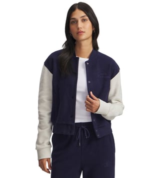 UNDER ARMOUR Blue Regular Fit Solid Long Sleeves Icon Terry Varsity Jacket